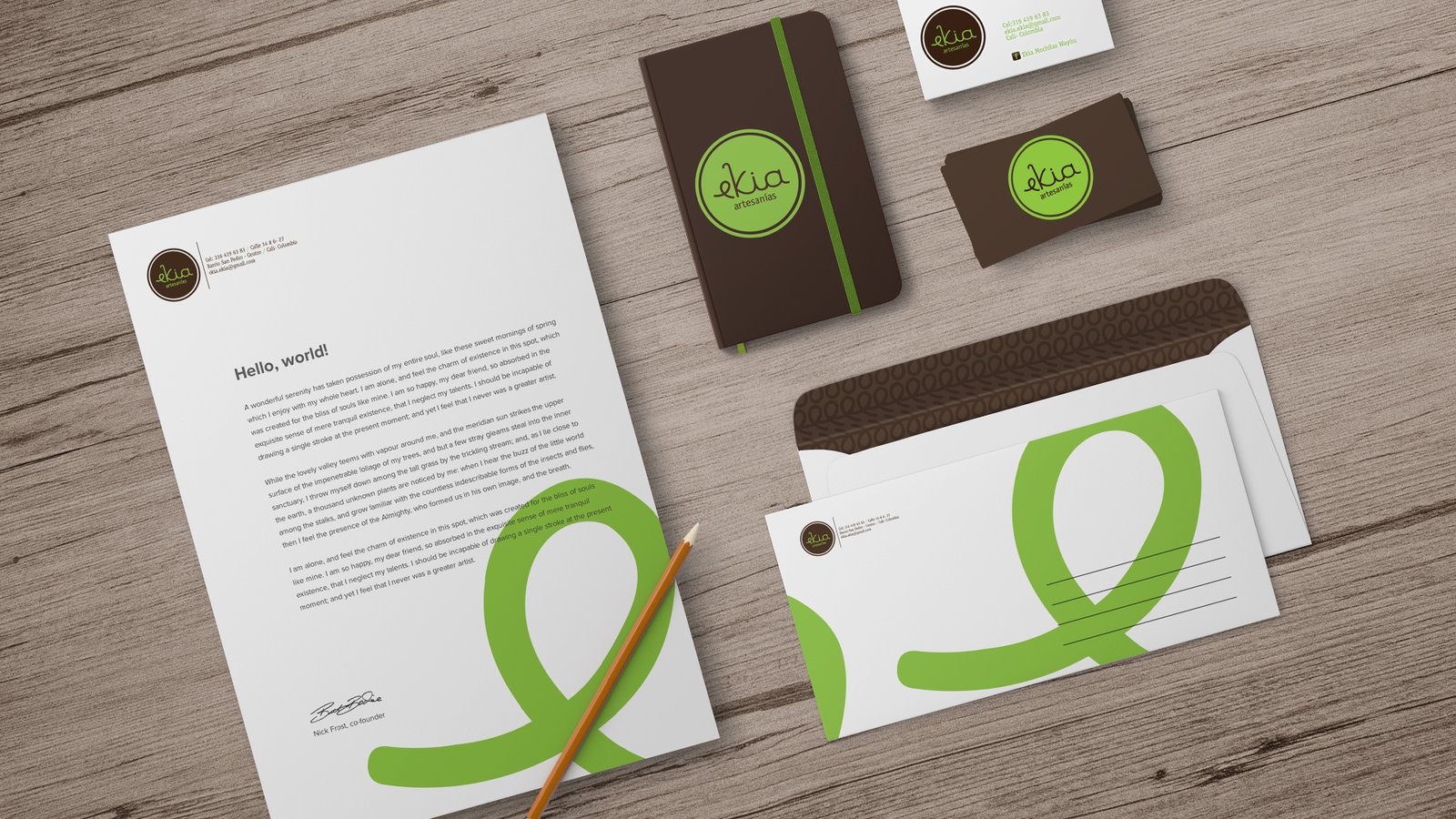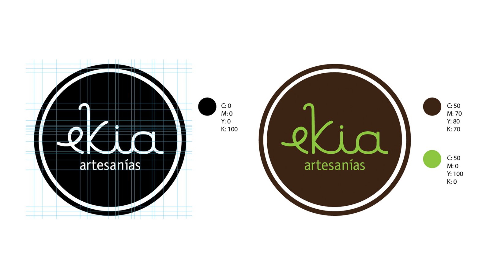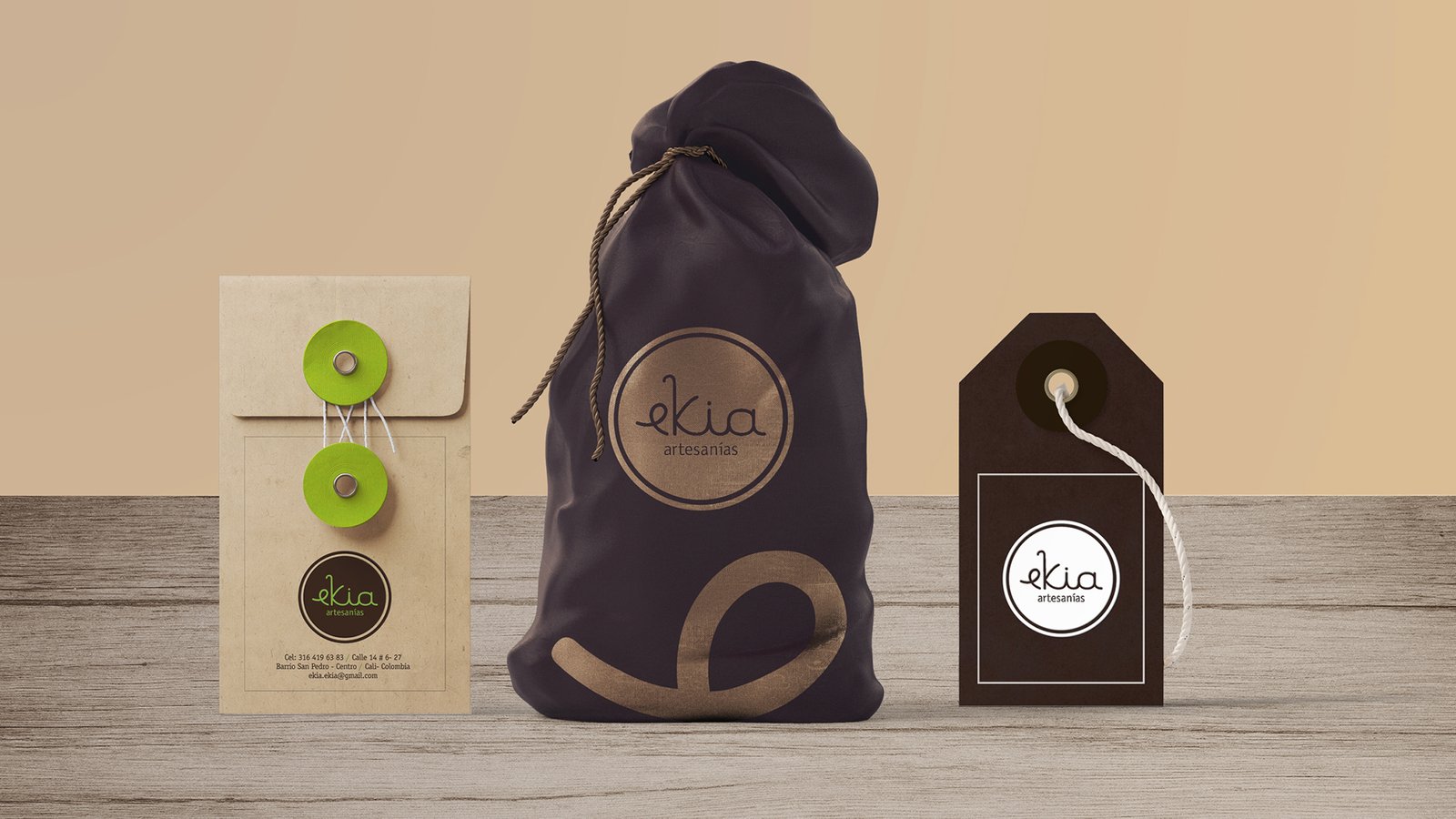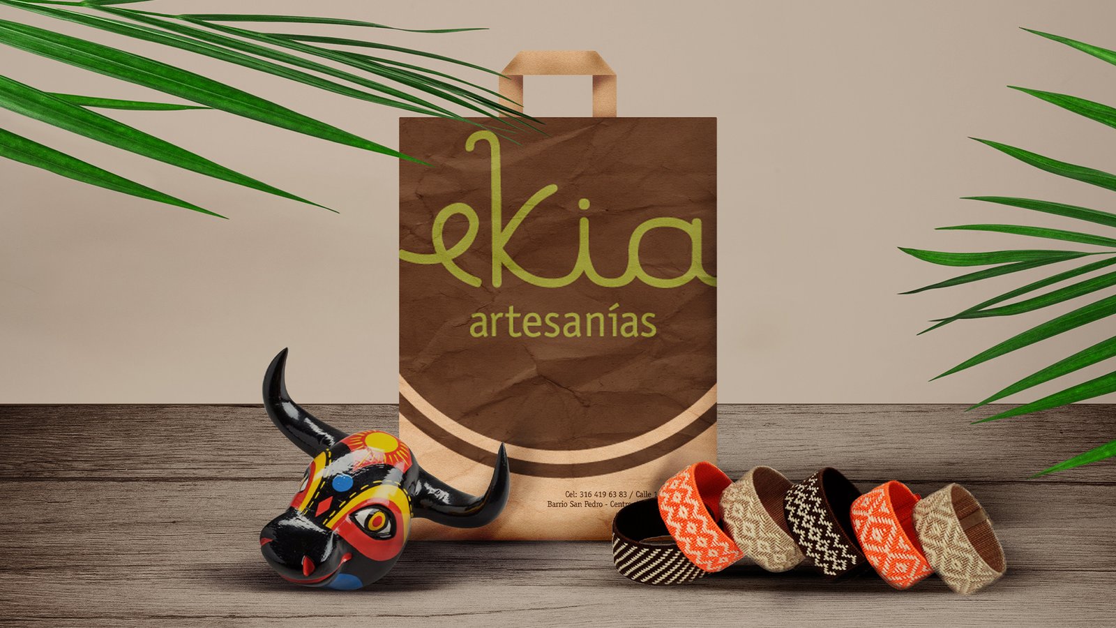 Diseño de identidad visual para ekia, una marca local de artesanías colombianas que celebra el saber manual y el arraigo cultural. El logotipo se construyó a partir de formas lineales que evocan técnicas de tejido tradicional, integrando así una estética contemporánea con referencias al oficio artesanal. Su forma circular, similar a un sello, transmite autenticidad y cercanía, mientras que la paleta en verde vibrante simboliza vitalidad, naturaleza y sostenibilidad. El sistema gráfico se aplica en materiales ecológicos y soportes diversos, reforzando el carácter artesanal y consciente de la marca.