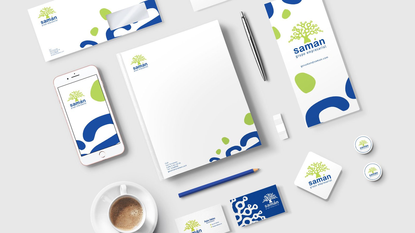 Diseño de identidad visual para Samán, grupo empresarial con enfoque multidisciplinario que opera en diversos sectores.